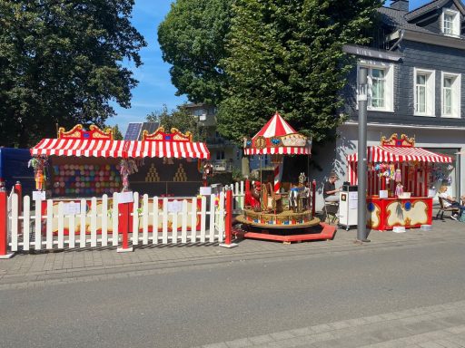 Auf Ihrem mobilen Jahrmarkt ist von Groß bis klein für jeden was dabei, vom Nostalgie-Kinderkarussell, Zirkus-Zauber, "Hau den Lukas" bis zu verschiedenen Spielständen mit Dosenwerfen, Ringewerfen uvm.